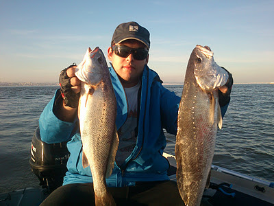 Mas como sem trabalho não há resultados, quase todos os dias que saia do trabalho ia à pesca, explorei spots desconhecidos e tentei conhece-los, muitas vezes sem resultados nenhuns, outras com charrocos à mistura mas sempre com uma nesga de esperança que a minha hora havia de chegar. As Corvinas já andavam no rio com toda a certeza, foram várias as que saíram com outros tipos de pesca mas ao spinning não conseguia tirar nenhuma. Ao longo destas longas e ingratas jornadas foram muitos os amigos que partilharam as grades comigo e que também não deixaram que a moral fosse abaixo porque esta pesca não é fácil.